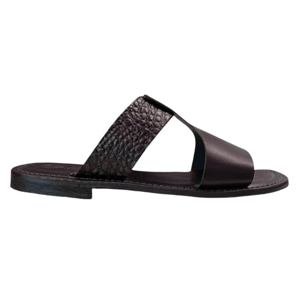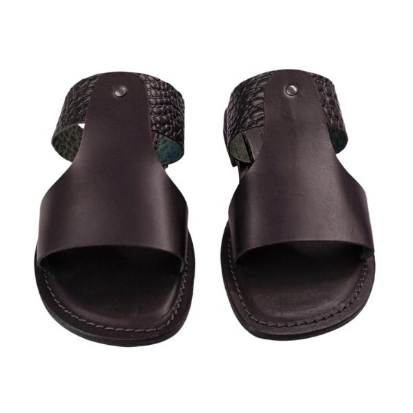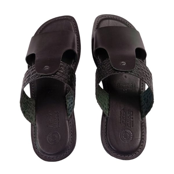 Sandali ciabatta da uomo in cuoio nero artigianale Victor