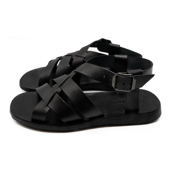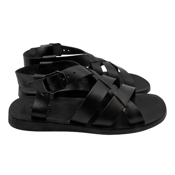 La versione nera, elegante e versatile, è pensata per l’uomo contemporaneo che non rinuncia mai alla personalità anche nei dettagli. Il design intrecciato a listini multipli avvolge il piede con decisione ma senza costrizioni, garantendo un sostegno saldo e un look inconfondibile.